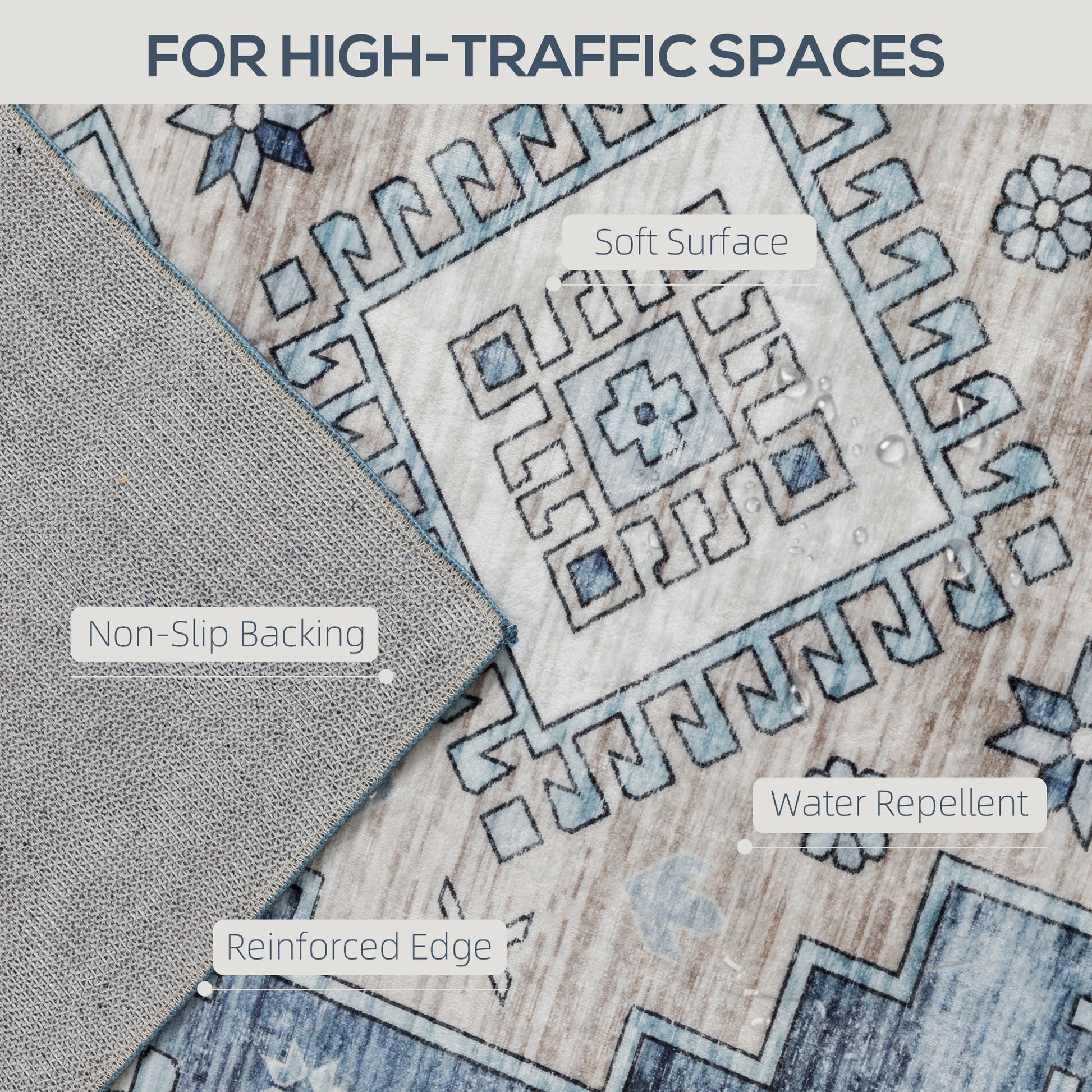 - - Anti-slip backing ensures safety and stability on slick floors
